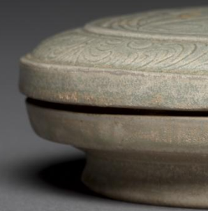 五代十国时期,人们尤其是女性对妆容较为重视, 有使用各类化妆品的习惯,如面脂、口脂、香粉等。 青釉刻花盖盒密封性相对较好, 可以有效防止灰尘进入, 避免化妆品受到污染或挥发, 方便人们日常梳妆打扮时取用 。