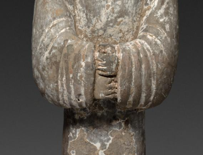 西汉灰陶拱手立俑