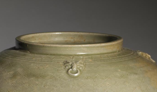 西晋青釉印花四系罐