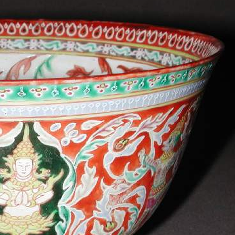 清代五彩描金佛像纹碗